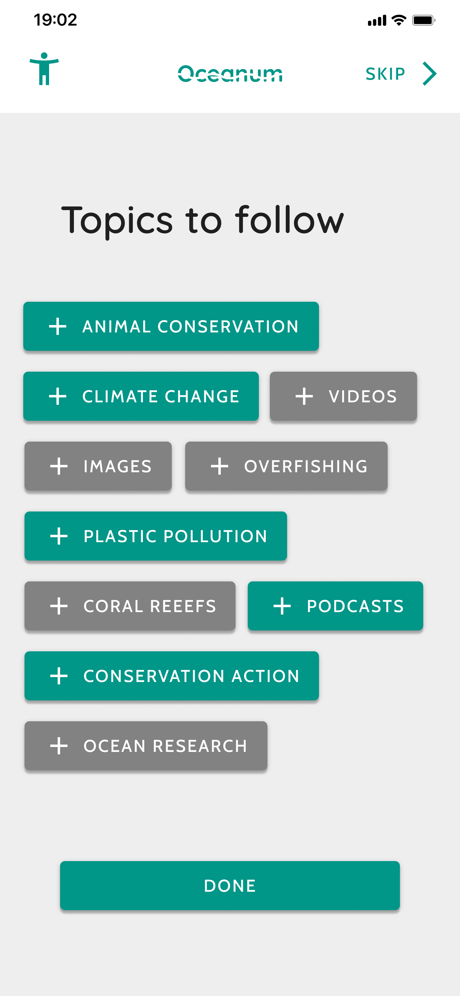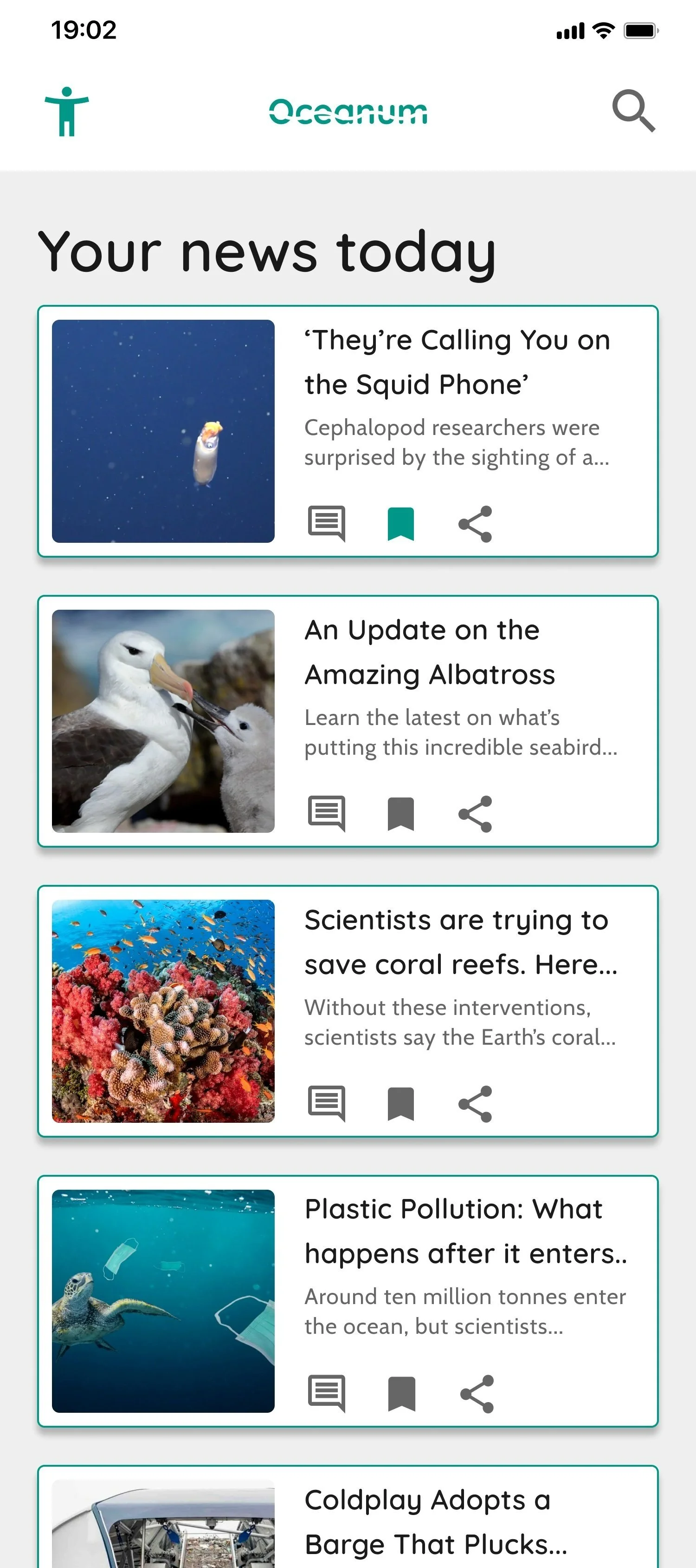 This app design focused on ocean conservation related topics and creating a news app user interface design. Google Material Design was used as guidance for design elements and accessibility considerations. Whimsical was used to create low fidelity wireframes. Figma was used to create all high fidelity wireframes used for the prototype. Main icons were hand-drawn as well as splash screen backgrounds.
