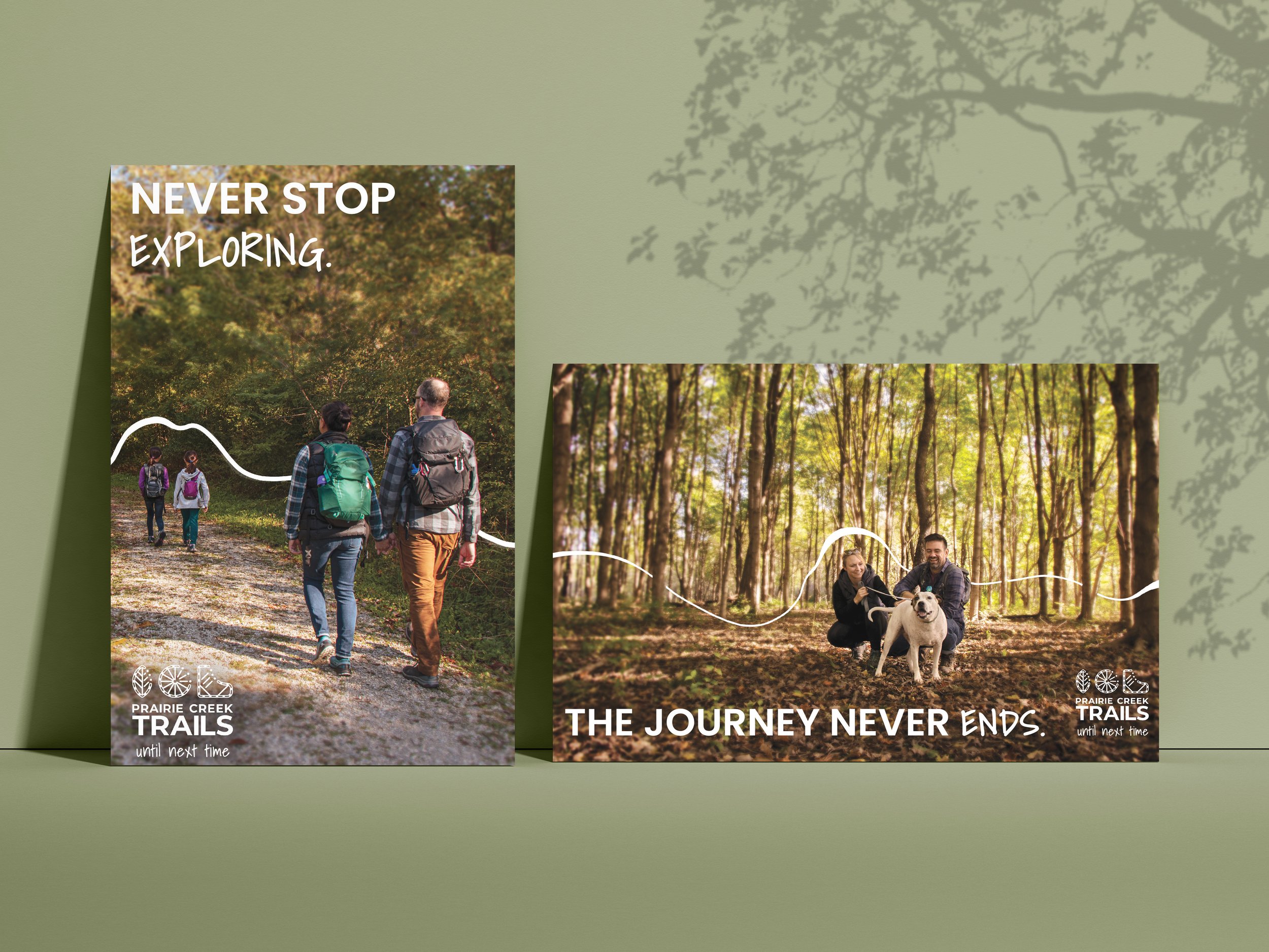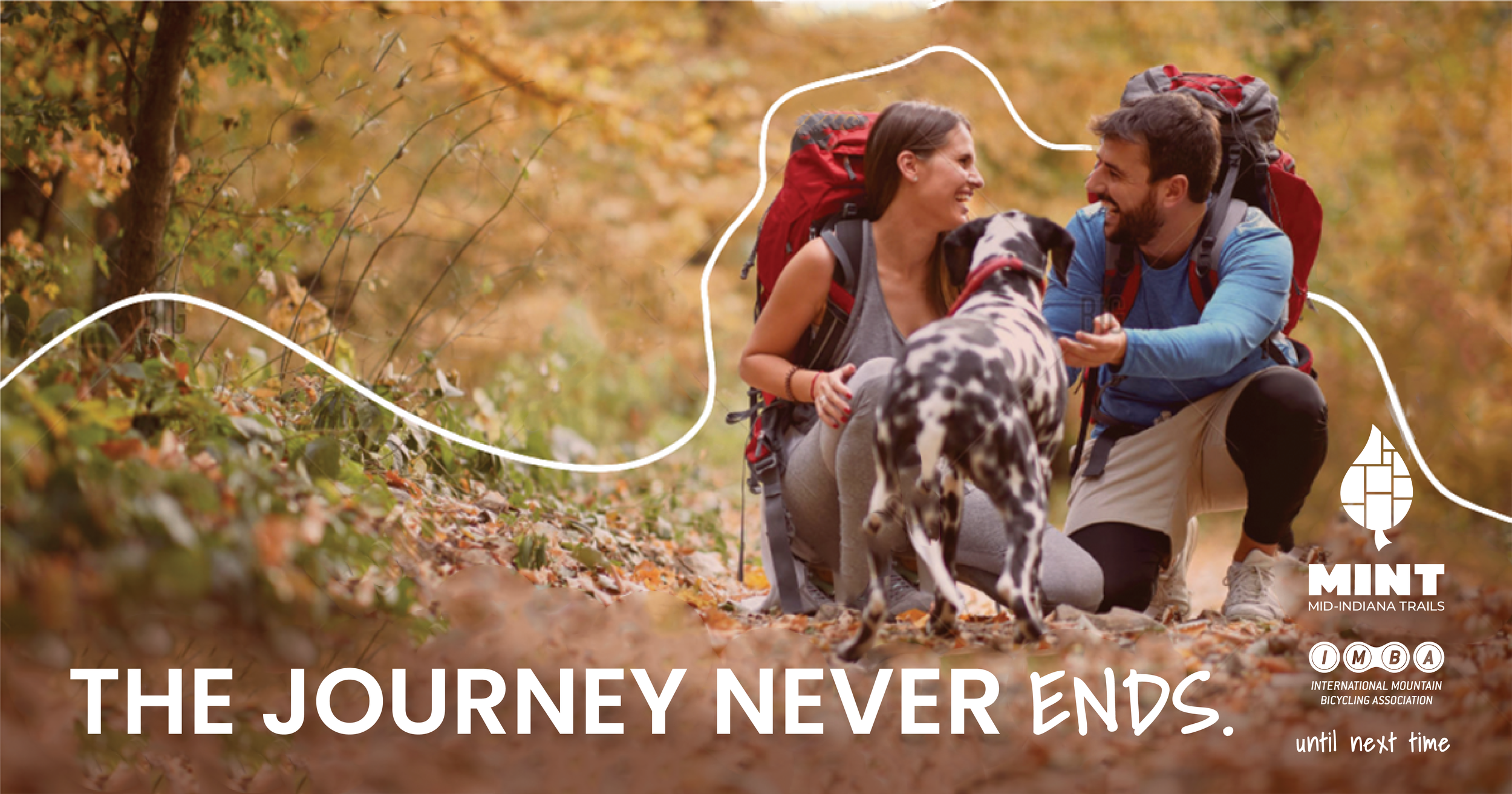 Mid-Indiana Trails, a chapter of the IMBA, is preparing an ongoing advertisement campaign for their first trail location, Prairie Creek Trails. The campaign focuses on evoking nostalgia within the viewer on various social media platforms. Until Next Time is the first campaign tagline which focuses on memories made while on the trail and how those memories may continue for those who come to Prairie Creek Trail. The campaign also encourages any kind of user to come to the trail by depicting a biker, family, and couple walking their dog.